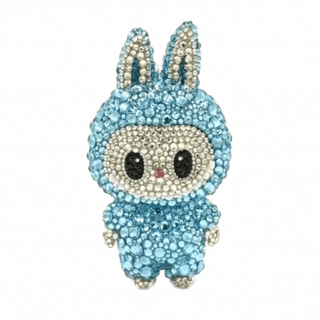 When we saw our first Labubu we absolutely had to reimagine it in a-morir fashion. Presenting: LABLINGBLINGS, our chic crystallized bag charms inspired by those cutie patootie plushies. Hand made to order and available in silver or black these Clip these blinged out babies to your bag, to your other plush bag charms, to your pants, your Y2K wallet chain, your pet's collar, whatever! We don't make the rules, we just make the Lablingblings.